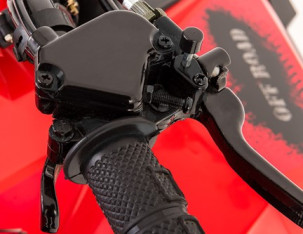 Le MUDHAWK de TAO MOTOR possède des doubles freins à tambour avant et un frein à disque arrière hydraulique au pied qui offrent une puissance de freinage douce et constante.